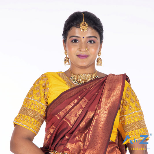 Yellow Blouse with Leaf Sleeves & Dual Embroider