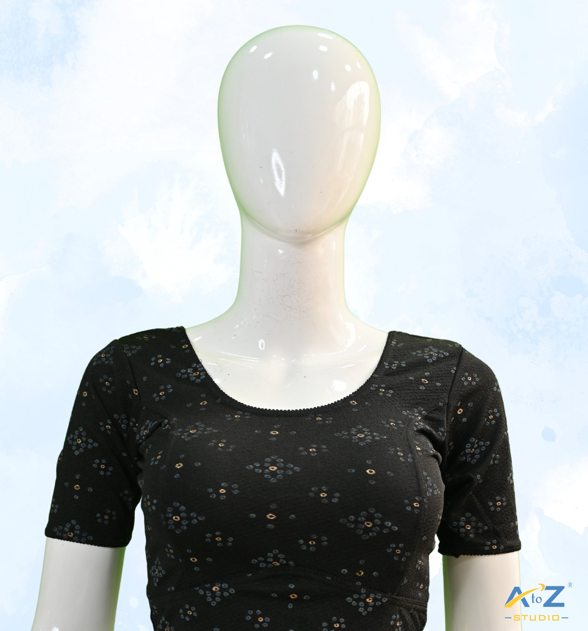 Black Crush Blouse with Bandhani Print