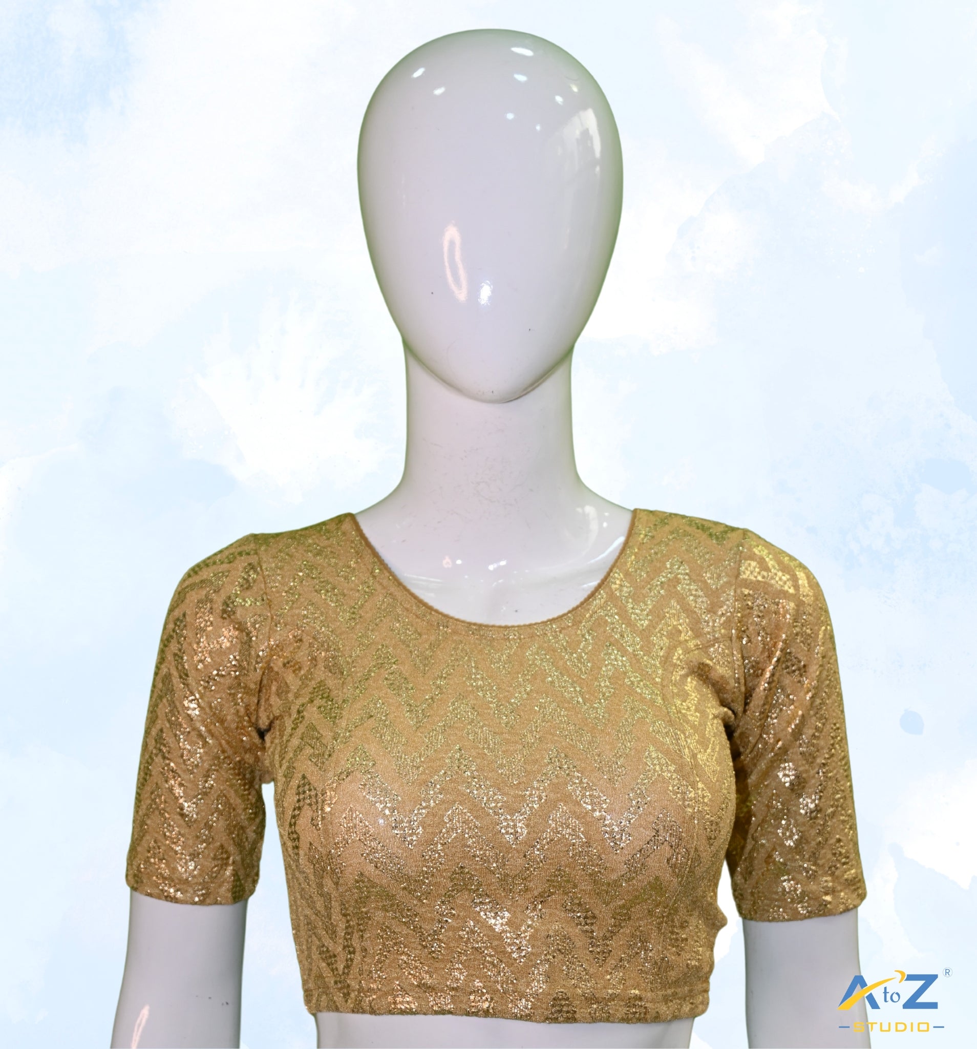 Dark Chiku Crush Blouse with Zig Zag Golden Print