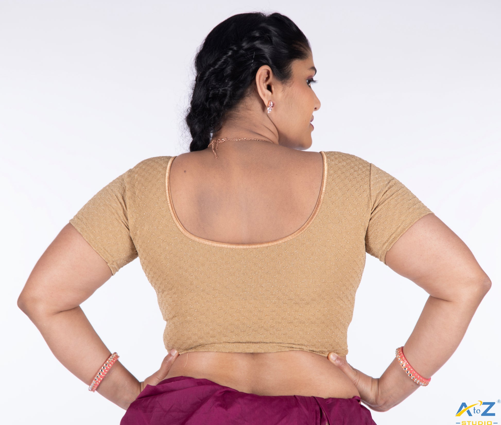 This Dark Cream Crush fabric blouse with short sleeves, a round neck, and shimmer tissue small square design adds elegance to every look.