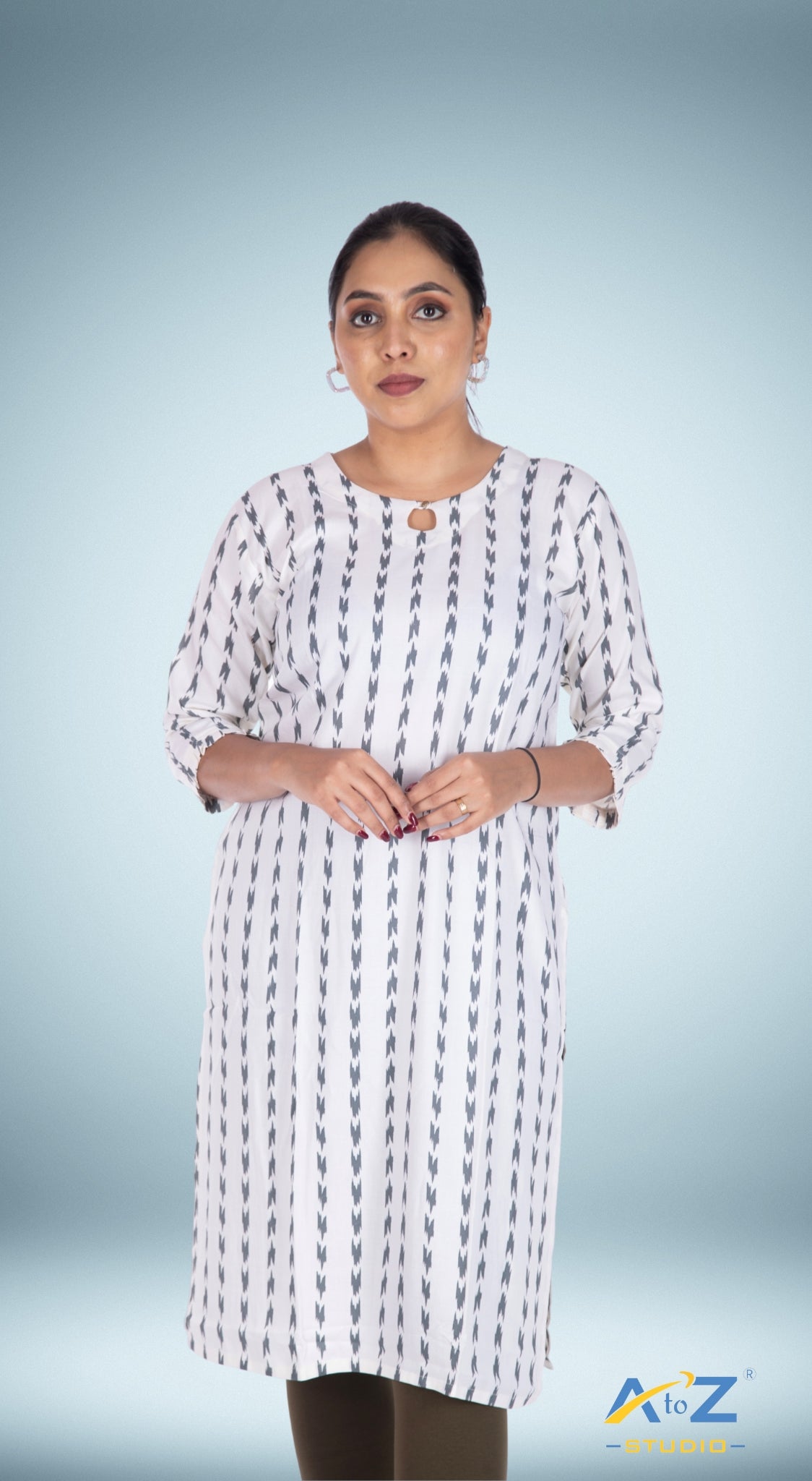 Unleash your inner fashionista with this ff-White Kurti. Its classic and versatile design is perfect for any occasion. Elevate your style game with our unique and playful piece. The perfect addition to any wardrobe. Don't miss out on this must-have!