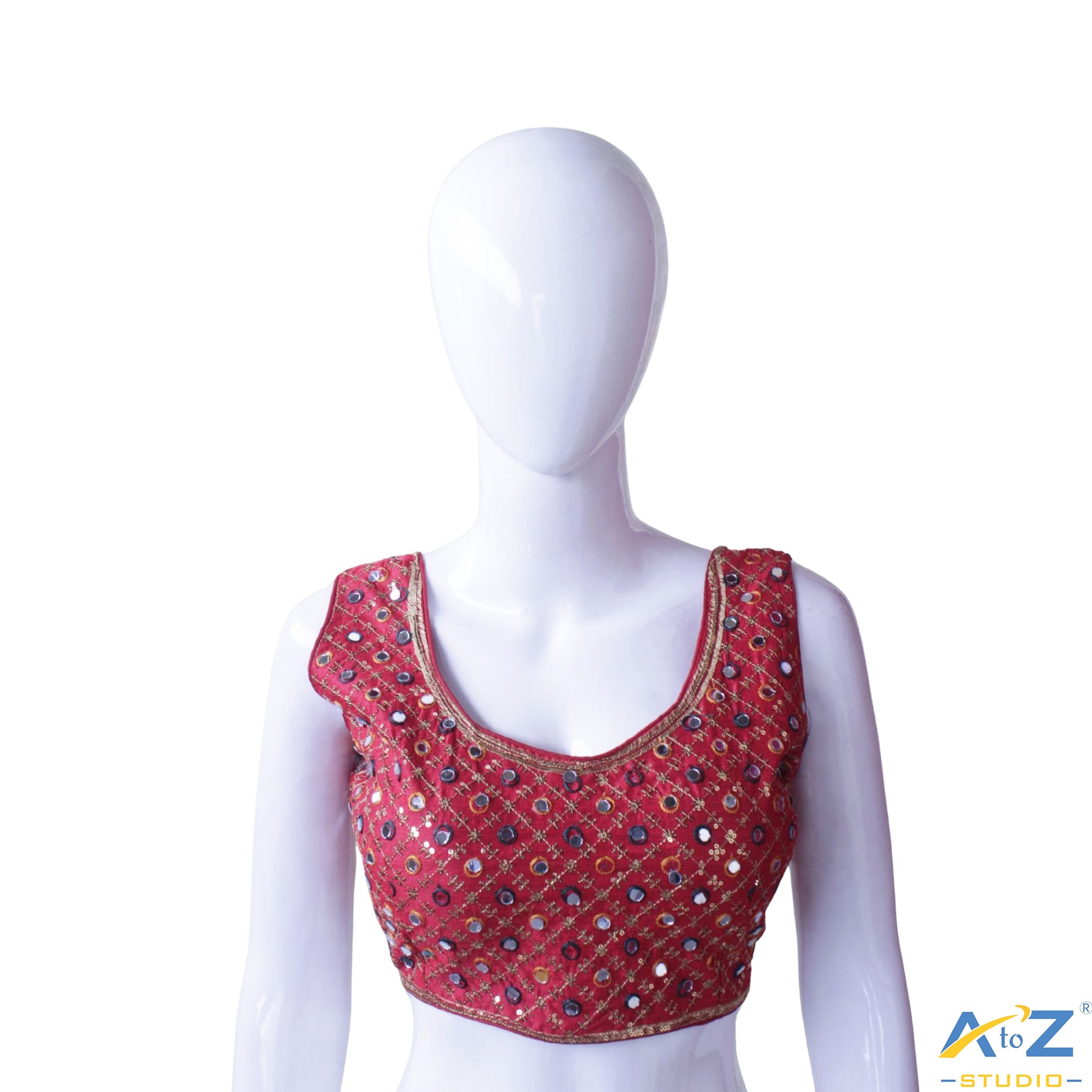 Hand-Embroidered Red blouse with sequin & Mirror work