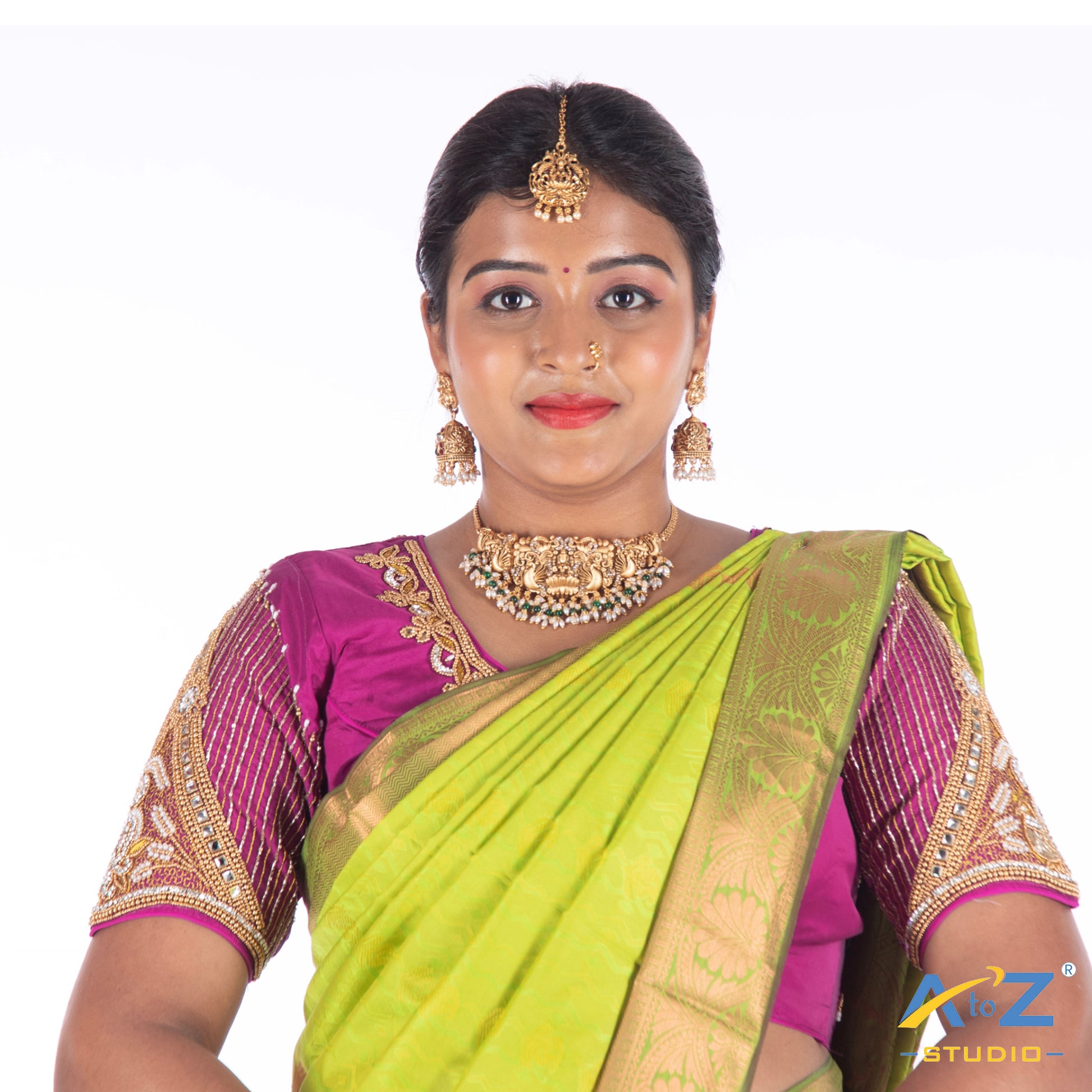 Elevate your style with this Silk Cloth blouse, featuring a stunning Aari work design and a chic Luxury Purple. Perfectly crafted in 872, this blouse offers extra margins for a customizable fit and front hook closure.