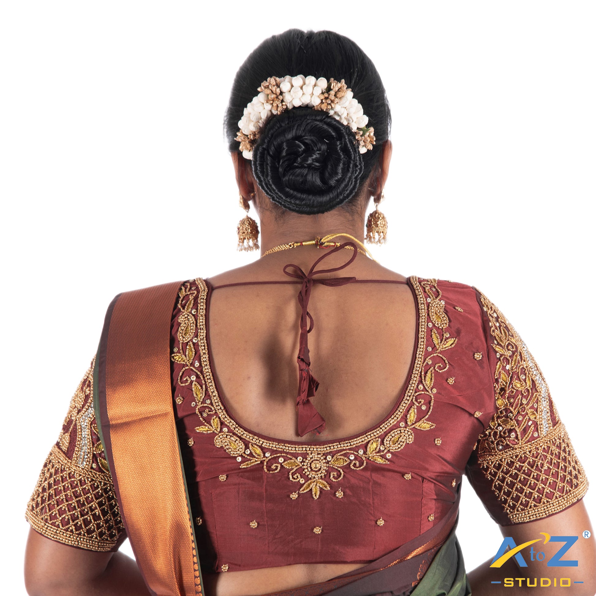 Maroon Silk Cloth Blouse with Drop and jhumka design Design
