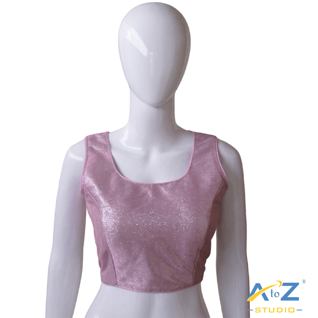 This eye-catching orchid blouse features a shimmering spiral pattern and a soft scoop neckline, combining elegance with festive flair. Ideal for enhancing your traditional ensemble at weddings and celebrations.