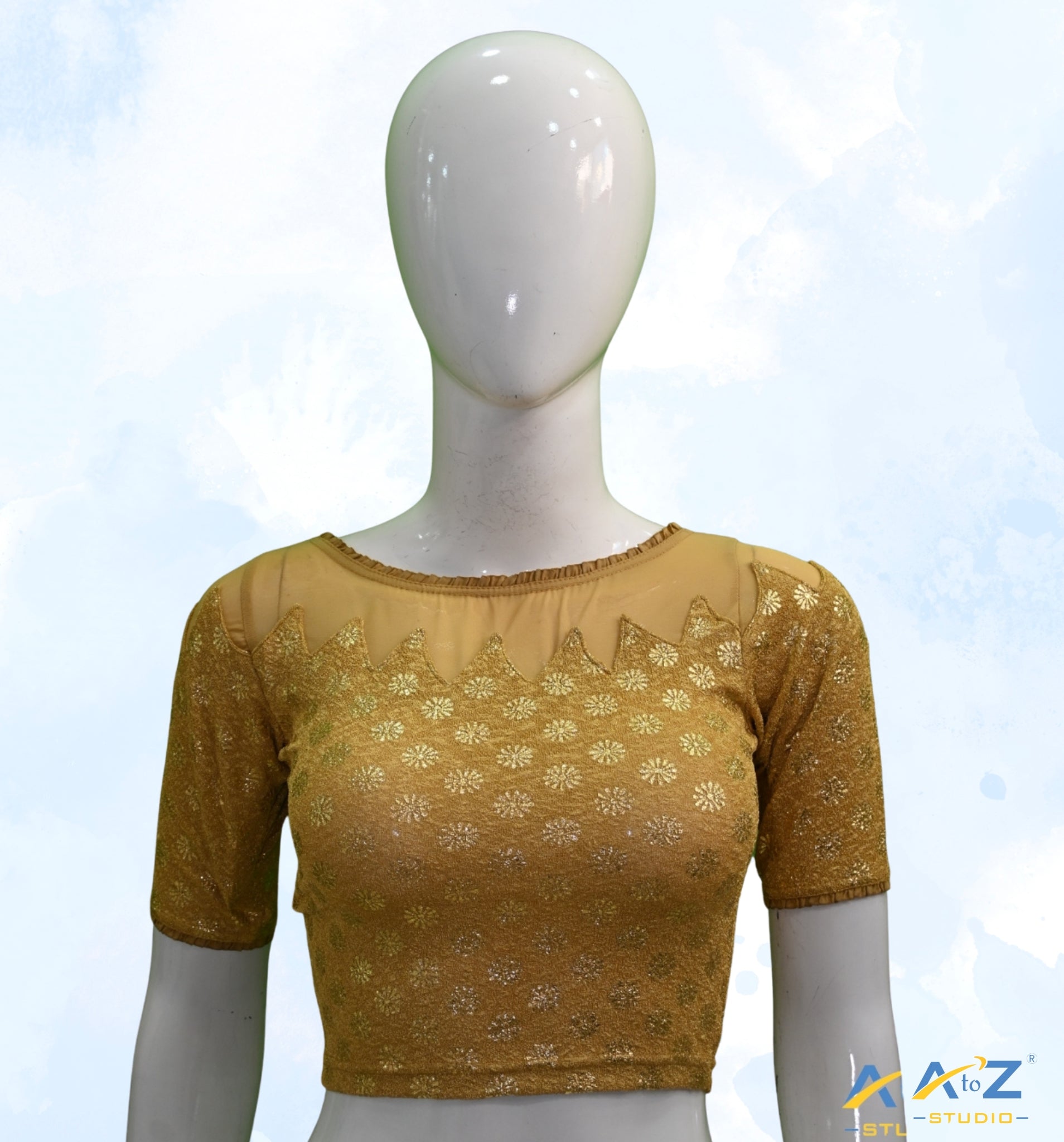 Dark Chiku Crush Blouse with Golden Flower & Net