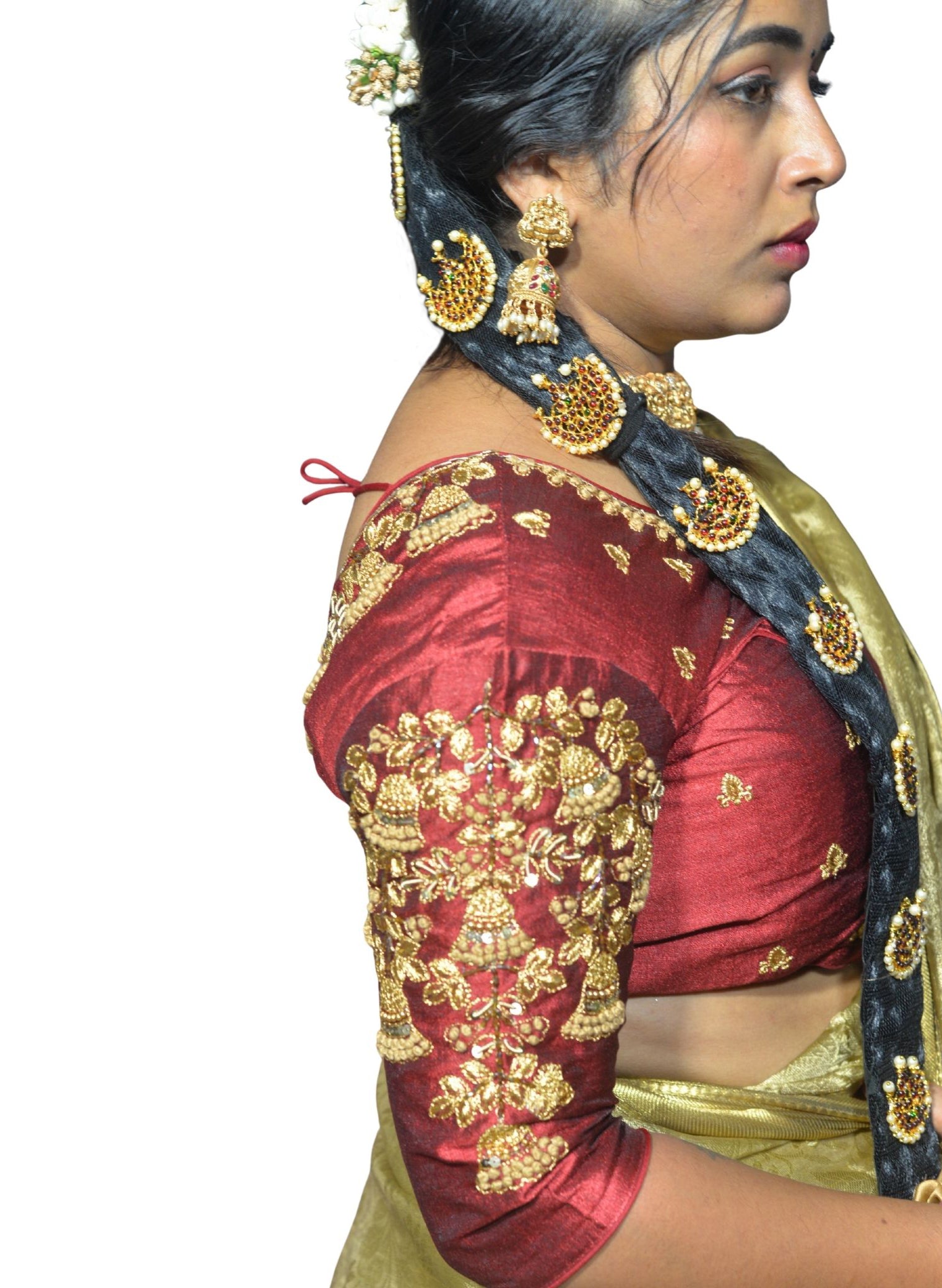 Elegant Maroon Blouse with Floral Aari & Machine Embroidery
