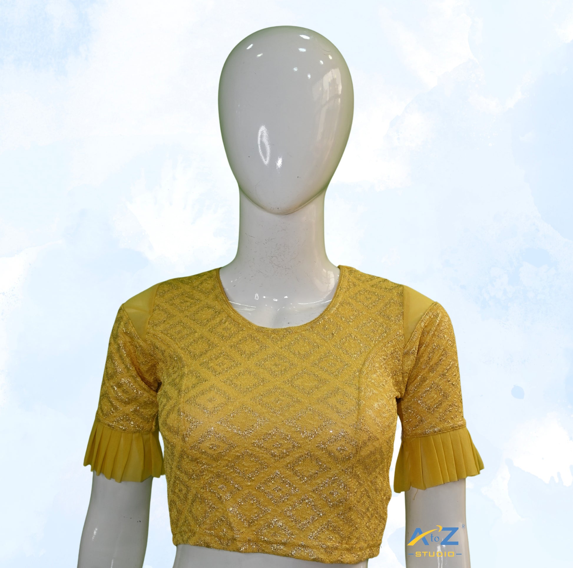 Gold Yellow Zarjet Blouse with Golden Diamond Print