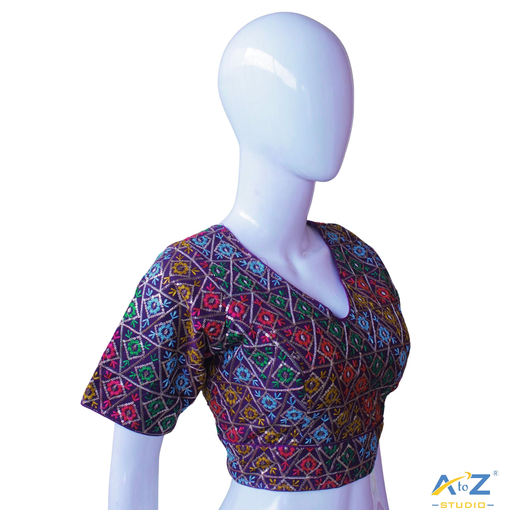 Design : This intricately designed choli showcases exquisite hand-embroidery with floral motifs in vibrant colors like pink, yellow, and green