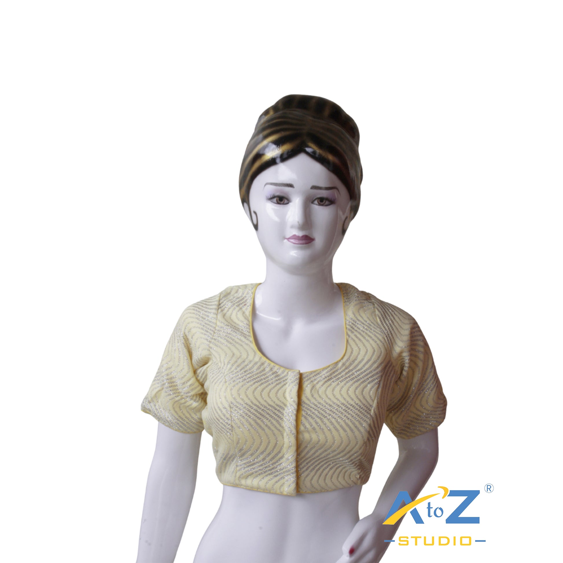 Brighten up any ethnic ensemble with this vibrant yellow blouse, adorned with elegant silver sequin wave patterns. Featuring elbow-length sleeves and a flattering round neckline, it ties at the back for a secure yet stylish fit. Perfect for festive occasions or daytime celebrations, this blouse adds a cheerful shimmer to your saree or lehenga look.