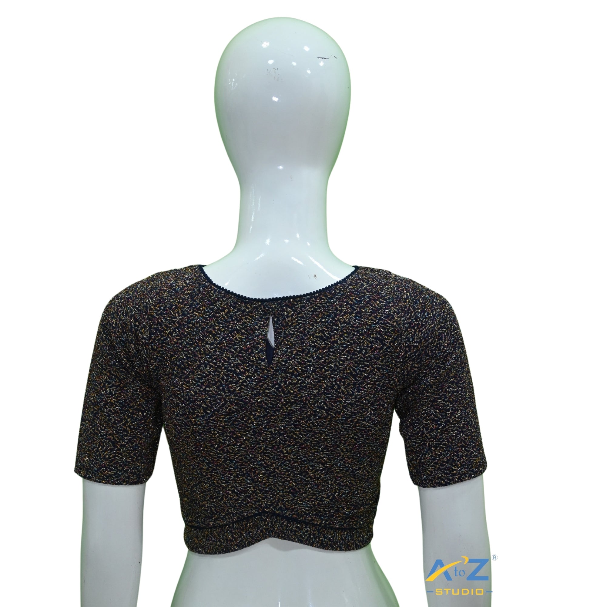Navy Blue Metallic Lycra Boat Neck Blouse