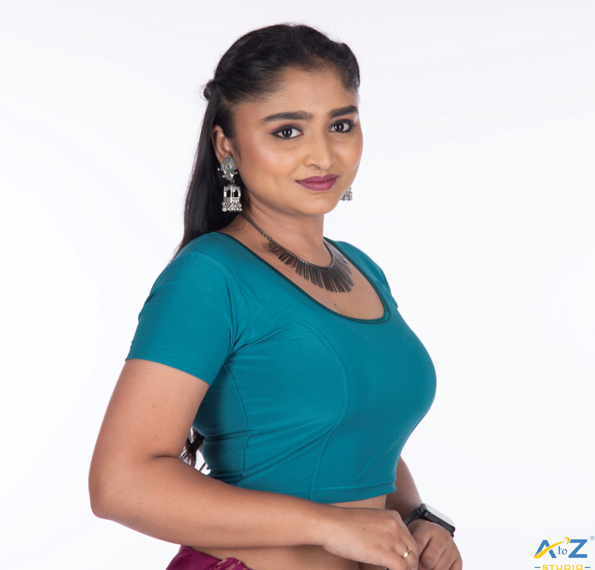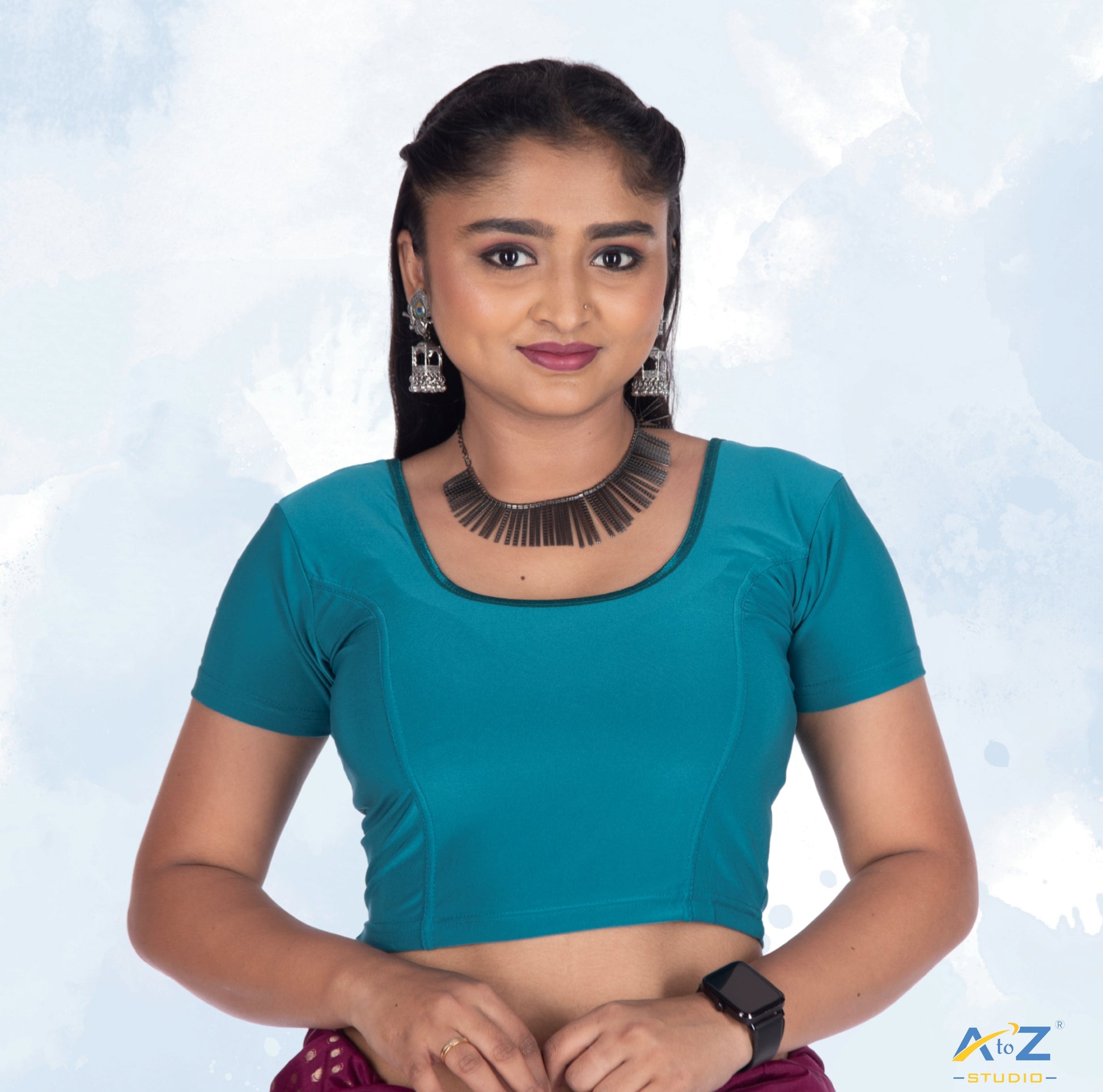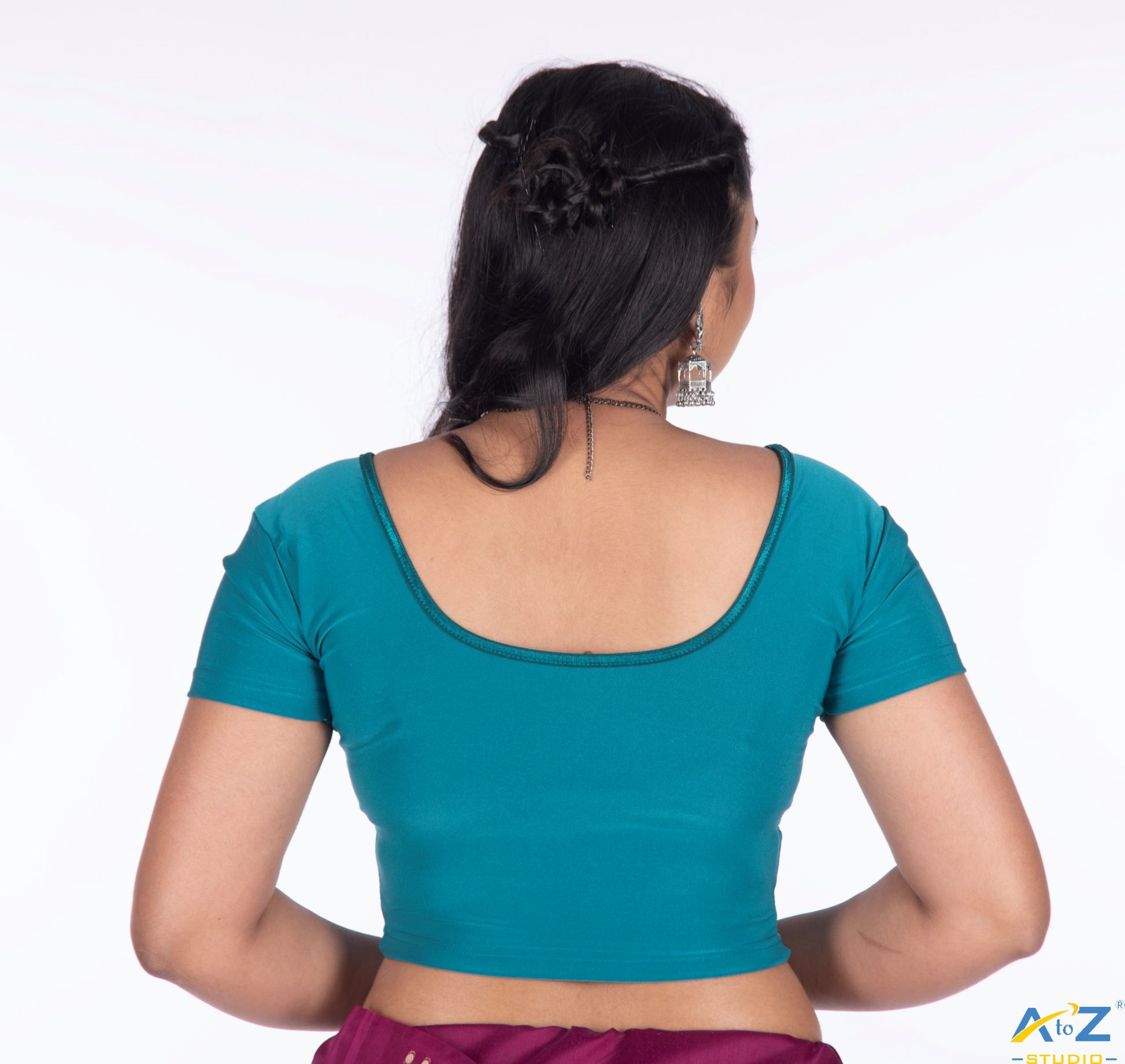 Rama Green Polyester Lycra has been crafted into this short sleeve blouse with a round neck and a sleek, minimal design.