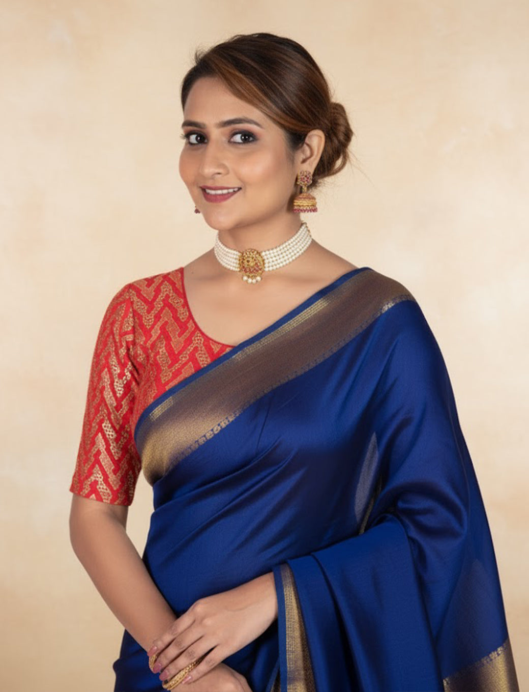 Red Crush Blouse with Zig Zag Golden Print