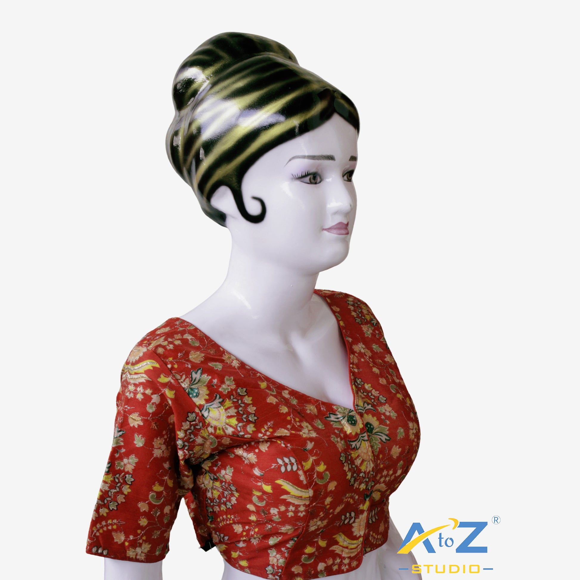 Design : Fiery Red Traditional Cotton Elbow-Sleeve Blouse